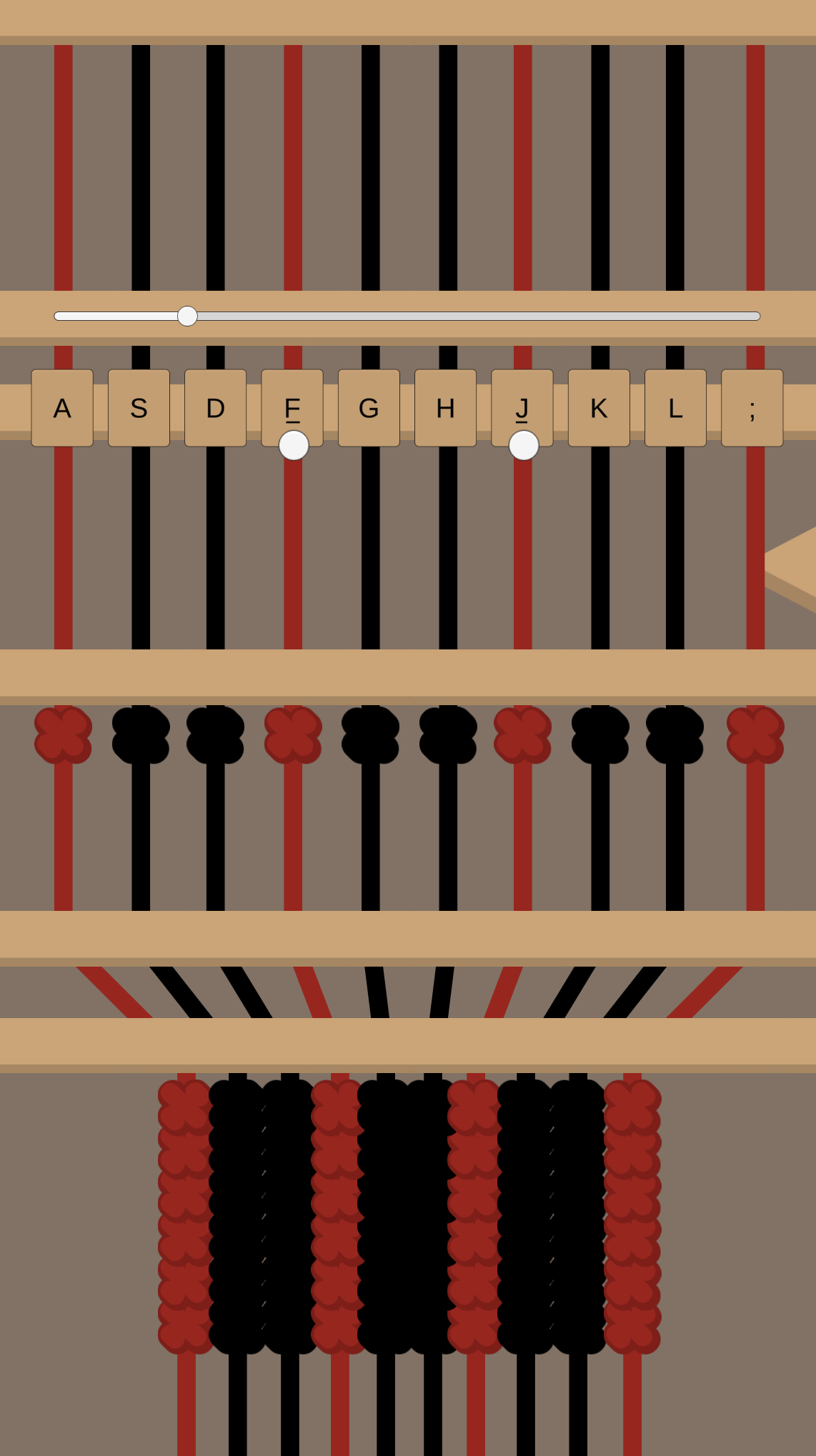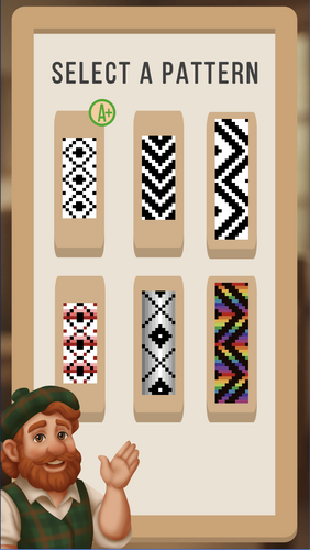 Loomcraft is a game about running a loom to create tartan patterns. Pick a pattern and get your keyboard fingers ready. Follow the prompts to press and hold the correct levers before the automatic shuttle weaves the row.