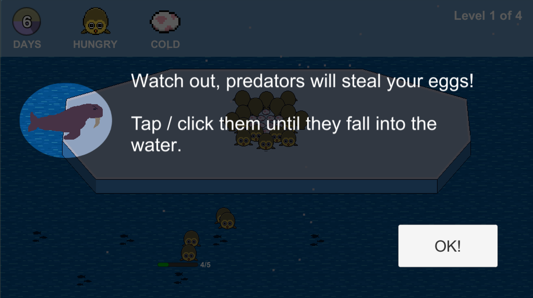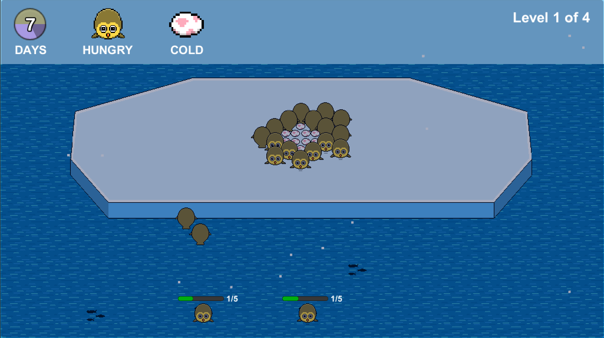 Keep your gaggle of Grooples strong by balancing the activities of fishing for food, defending the nest from predators, and huddling together to keep your eggs warm.